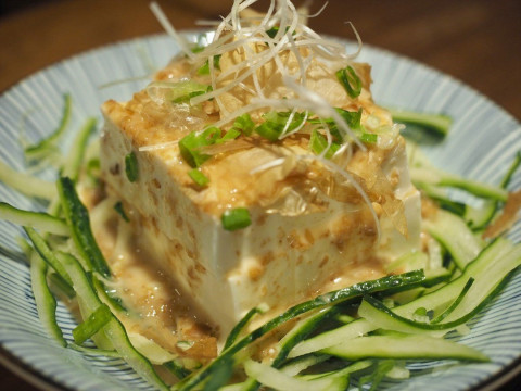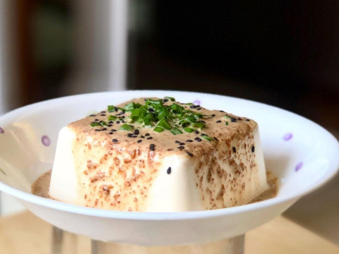 麻醬豆腐簡直是懶人食譜頭三位之一,因為它不用開火,是一道只需 3 分鐘就可以完成的菜式。材料亦非常簡單,只需要兩樣在超級市場都可買到的材料:即食豆腐和日式麻醬,只要將適量麻醬倒在豆腐四周即告完成!雖然看似簡單,但麻醬豆腐是一道非常百變的佳餚,大家可以根據自己的口味,在豆腐上加上木魚碎、青瓜絲和秋葵等,就可以變成另一道菜式。