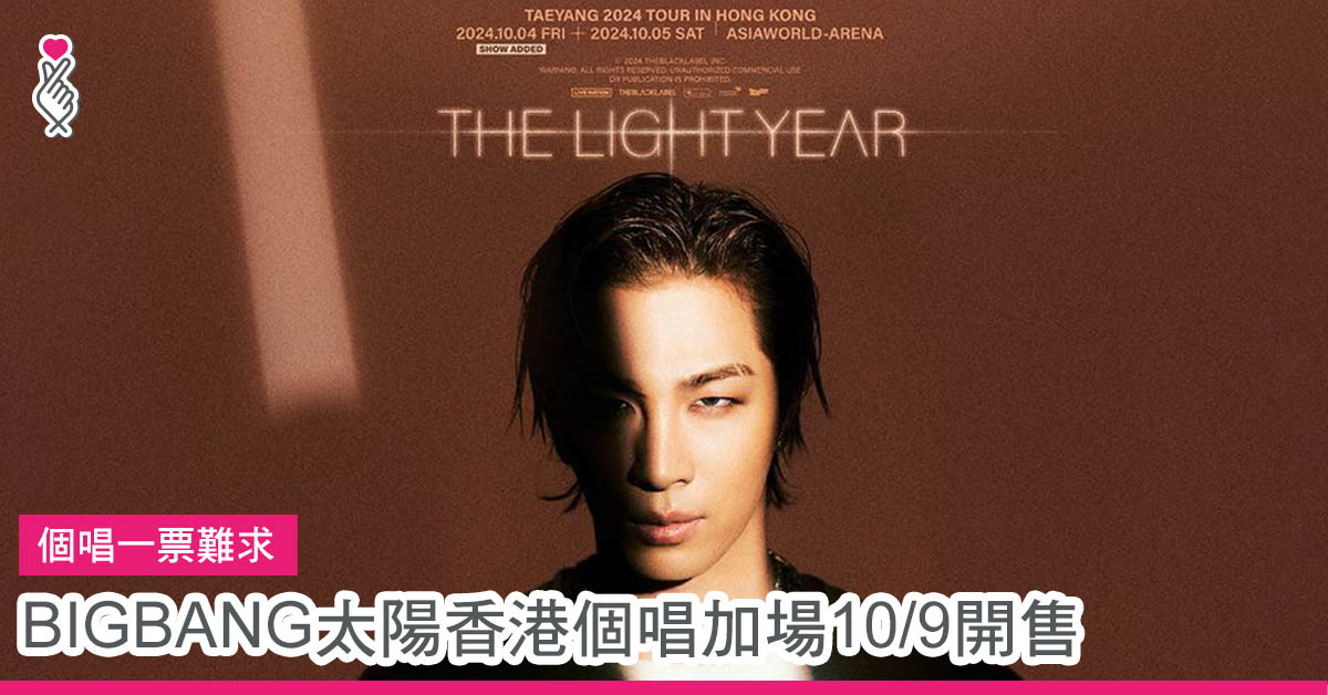 BIGBANG太陽香港個唱2024|韓國天團BIGBANG成員太陽(TAEYANG),睽違7年再度舉行個人巡迴演唱會,10月5日舉行的香港場在公開發售後旋即售罄。