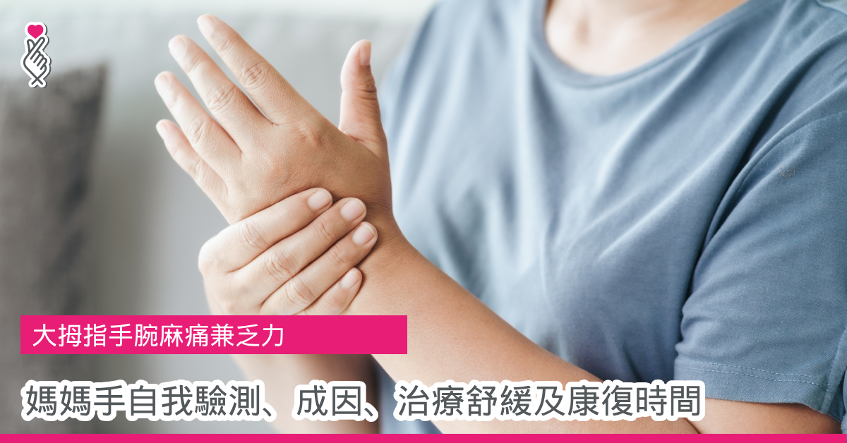 大拇指手腕痛丨大拇指手腕麻痛兼乏力可能是媽媽手?媽媽手自我驗測、成因、治療舒緩及康復時間