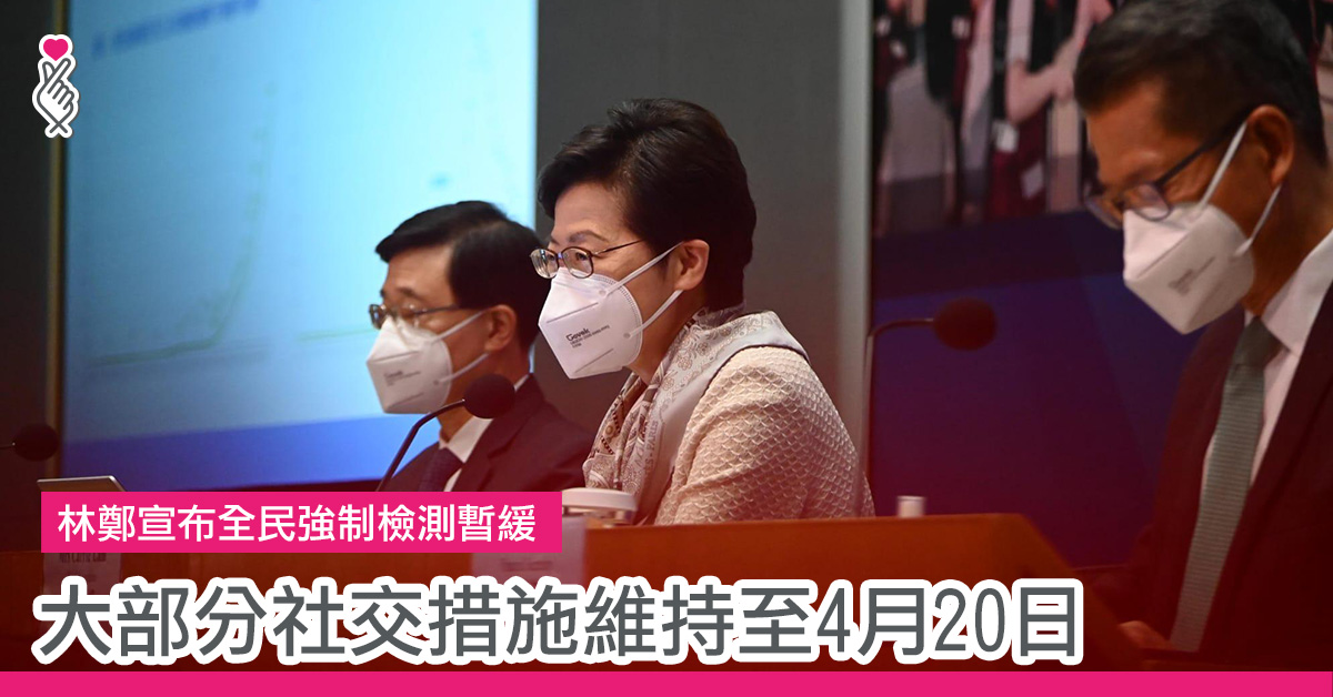 林鄭宣布全民強制檢測暫緩 大部分社交措施維持至4月20日
