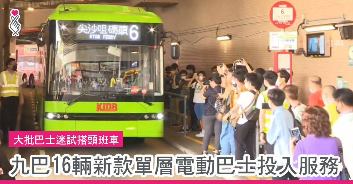 大批巴士迷試搭頭班車 九巴引入16輛新款單層電動巴士投入服務