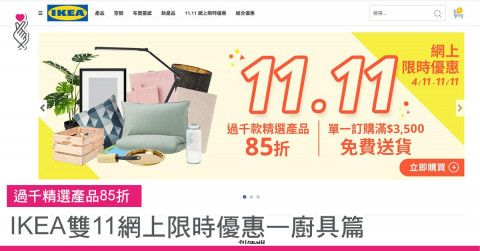 雙 11 將至,多個品牌都有推出雙 11 優惠吸引顧客購物。港人最愛之一的 IKEA 宜家家居都推出雙 11 網購優惠,過千款精選產品有 85…