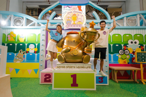 東京奧運即將舉行,全城陷入奧運運動潮!連 Sanrio 家族都趁著這股運動熱,總動員殺入尖沙咀 The ONE 和銅鑼灣皇室堡競技場參與盛事。 12 位 Sanrio 角色將換上全新獨家運動造型矚目登場,並破天荒地分為男女兩組,以 9 大競技項目熱鬥。不論男女子組員全部自信滿滿,勝算在握,今個夏日勢以活力爭 Likes 奪秒,為組別贏得體壇最活躍新星寶座!之前為大家介紹過 The ONE 動感女子組,而皇室堡活力男子組,則由布甸狗領軍,聯同 AP 鴨、玉桂狗、Kero Kero Keroppi、 PC 狗和 Tuxedosam ,以汗水灑遍運動場,玩盡花式滑板、踩單車、棒球等運動。