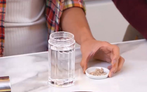 5.將 4 隻雞蛋在大碗中混打成蛋汁,加入 320 毫升清水,配以少許胡椒粉、花雕紹興酒和麻油,以及適量鹿芝靈水。