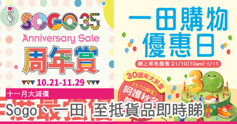 十一月是傳統減價月,SOGO感謝祭及一田購物優惠日的大減價更是全城注目!準備好荷包未? 立即送上超級放血情報!
