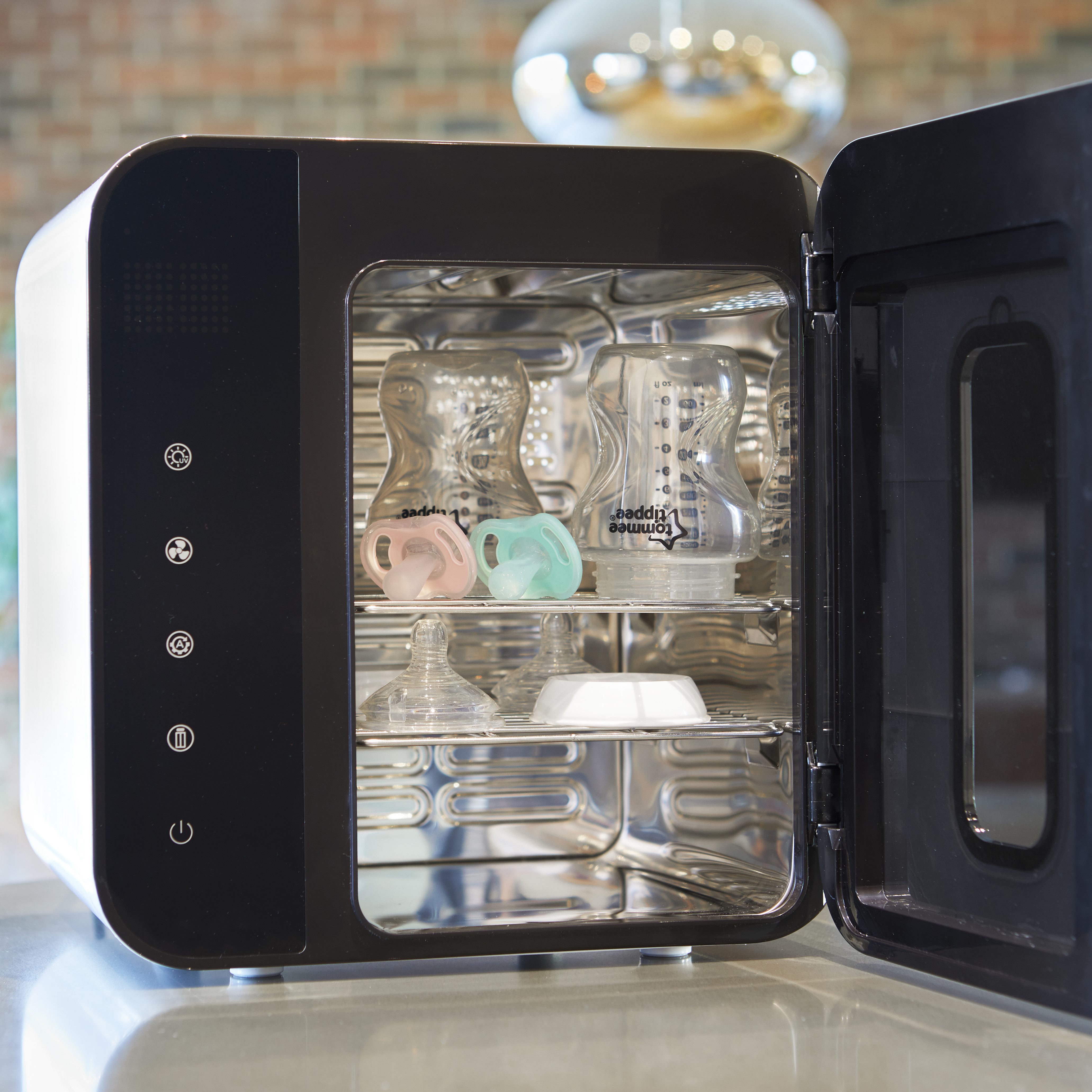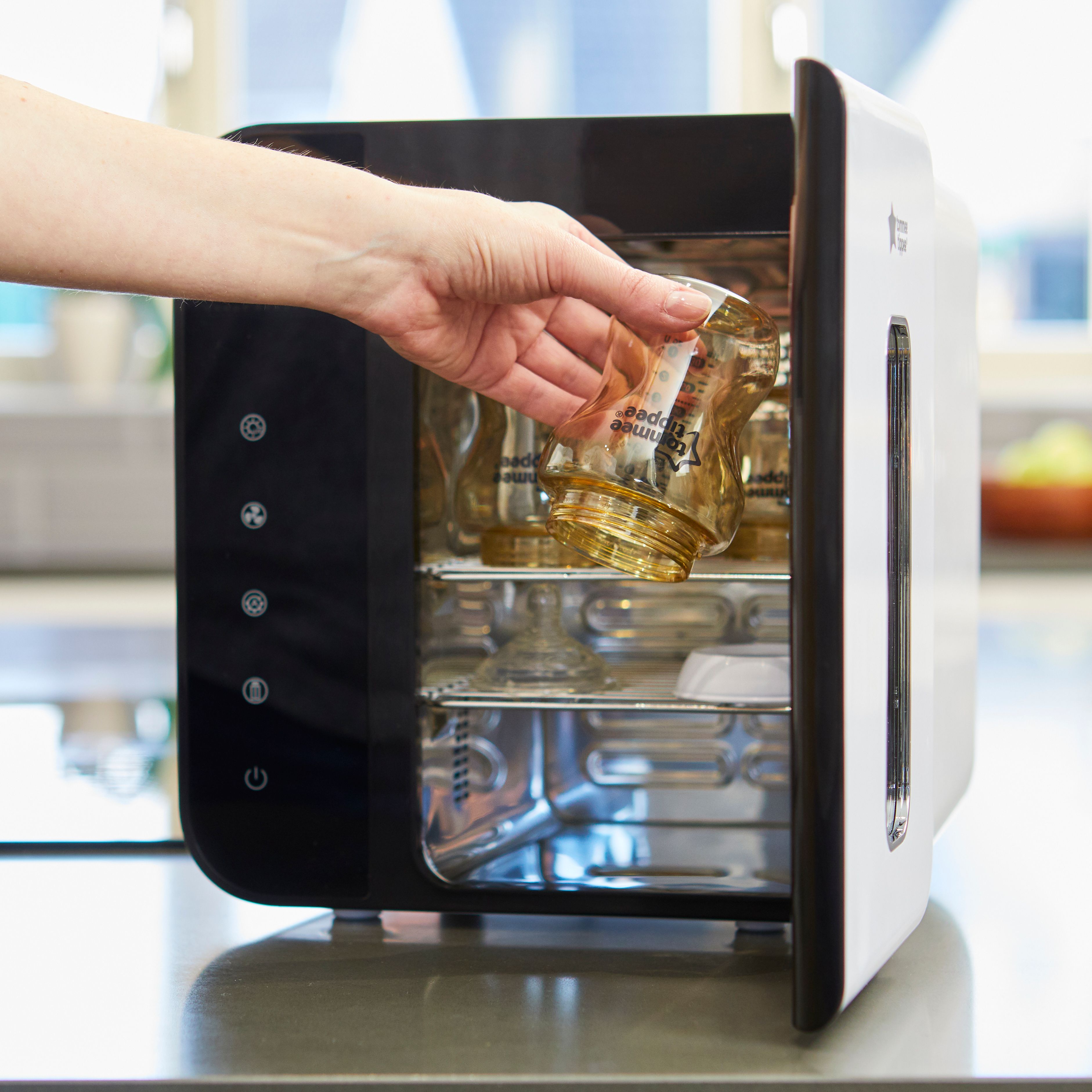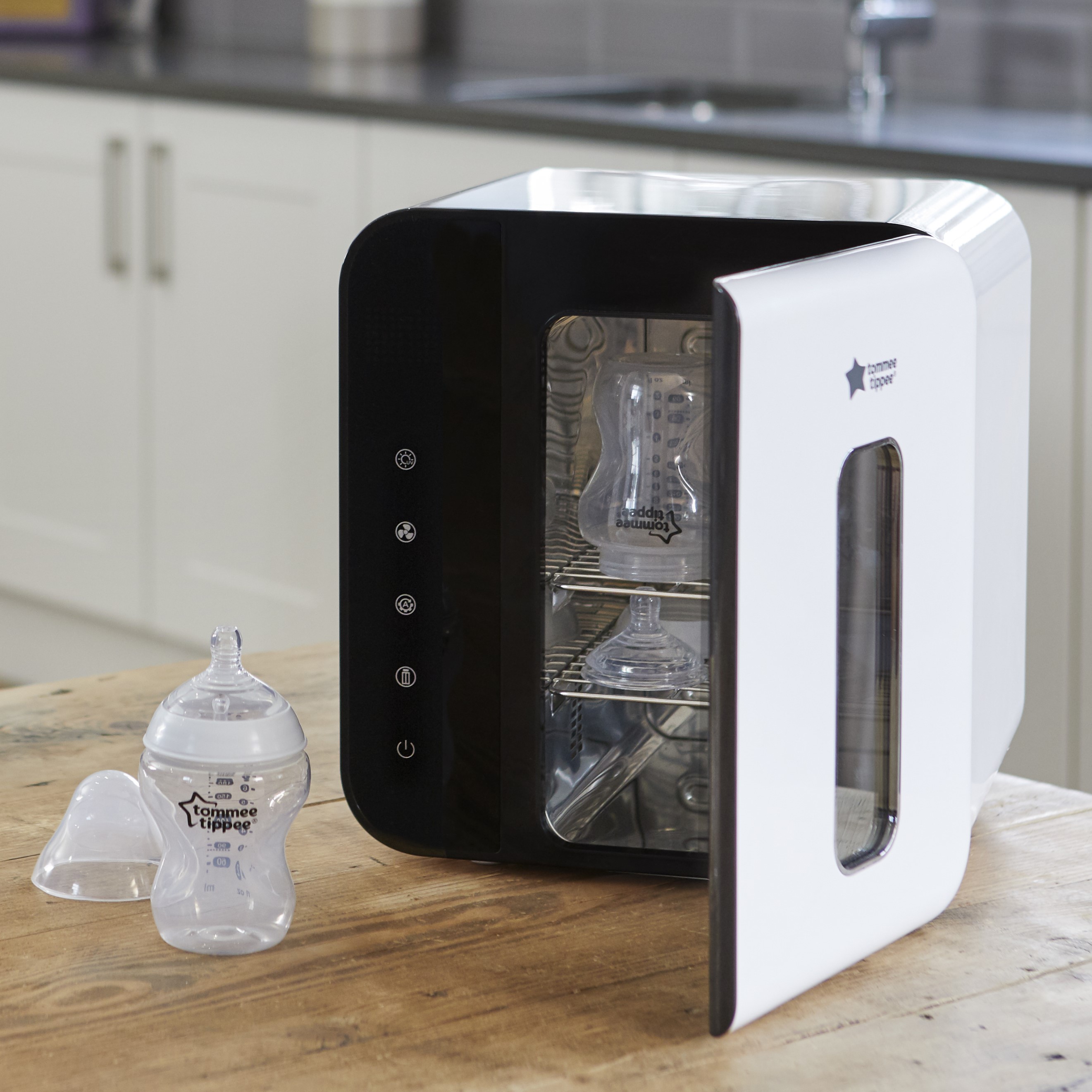 Tommee Tippee 多功能 UV 紫外線消毒機集消毒、烘乾、儲存三大功能於一機,方便家長們快捷地消毒母嬰用品。消毒機利用 UVC 紫外線消毒,能殺滅 99.9% 的細菌。