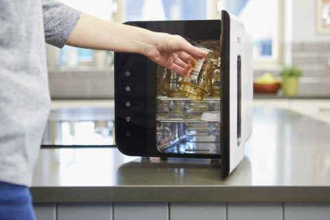 消毒機備有 4 個操作模式,包括消毒、烘乾、自動 (烘乾及消毒)、儲存 (每 2 小時循環烘乾及消毒各 5 分鐘),切合使用者不同需要。只需輕觸按動,就可以啟動消毒機,烘乾及消毒 6 個奶瓶,只需 60 分鐘便完成整個程序。消毒機備有特大 LED 顯示屏,可清楚顯示餘下的運作時間。